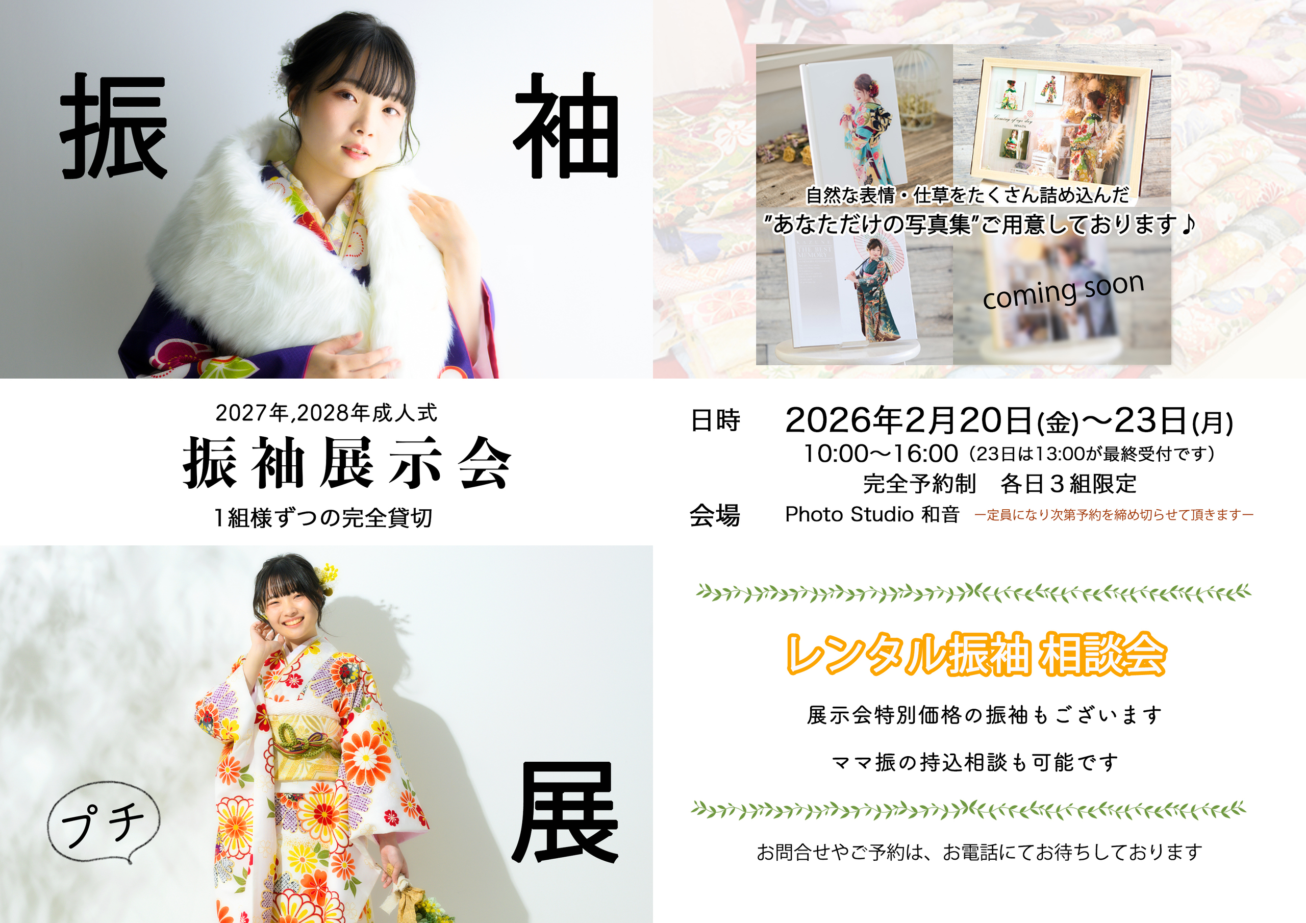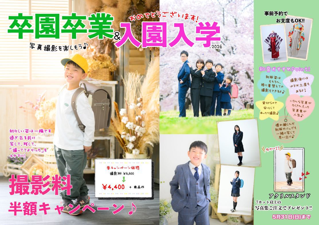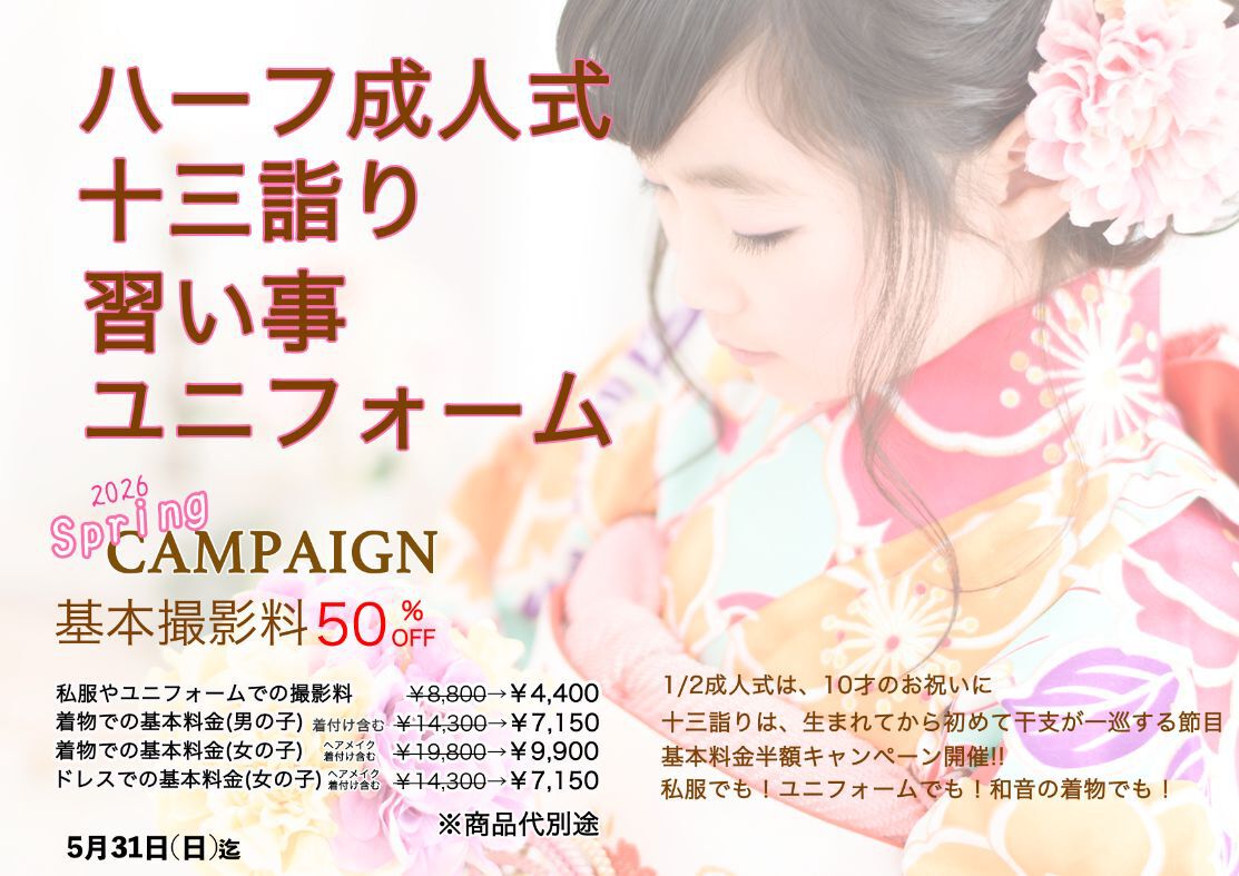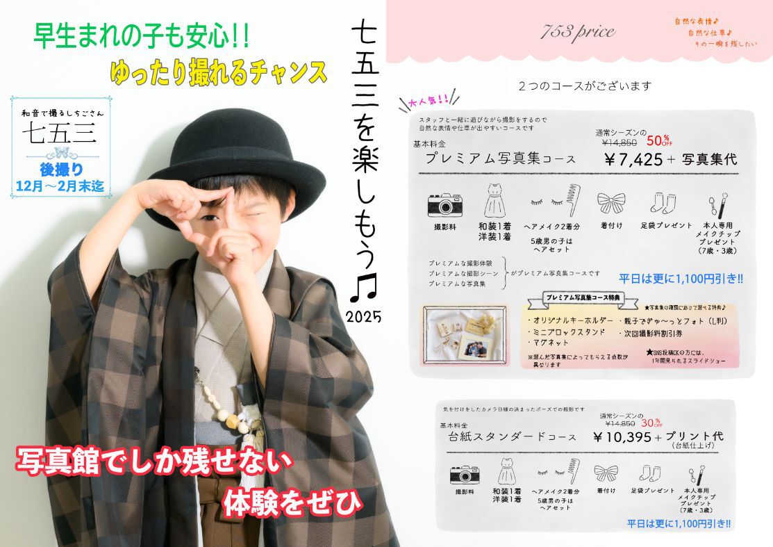 普段着のカジュアルフォトはもちろん 七五三や成人記念もシンプルでおしゃれに残しませんか♪