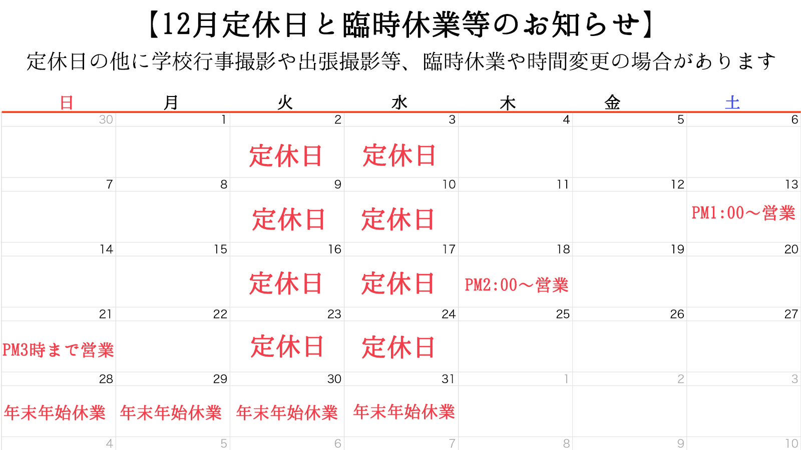 ※夫婦二人と美容スタッフで運営する小さなスタジオのため、撮影中等で電話に出ることができないことがございます。