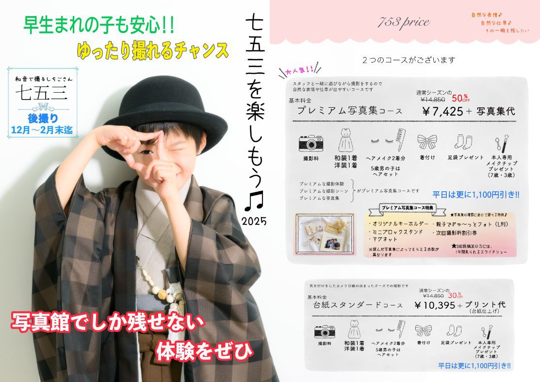 当店では大切な七五三の記念を形で残していただきたいという想いから、データ優先の撮影やデータのみの販売は行っておりません。